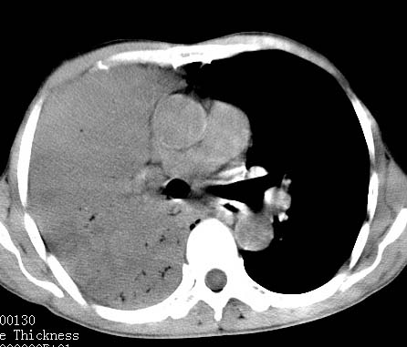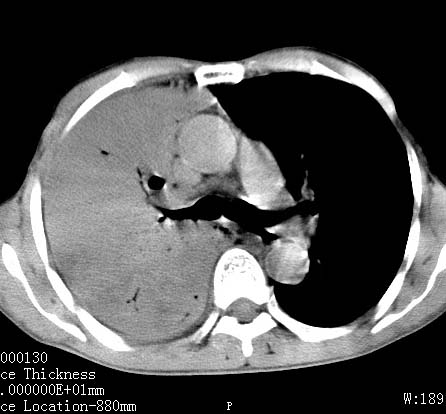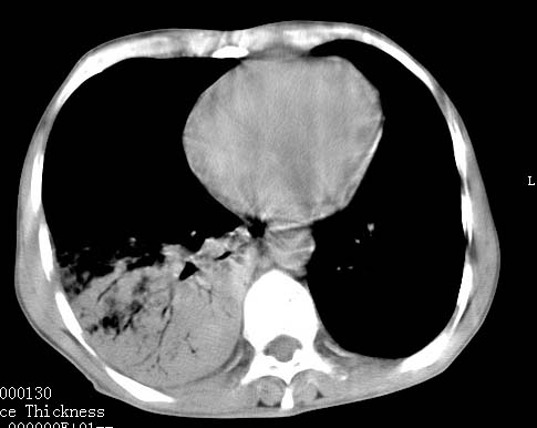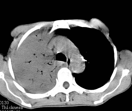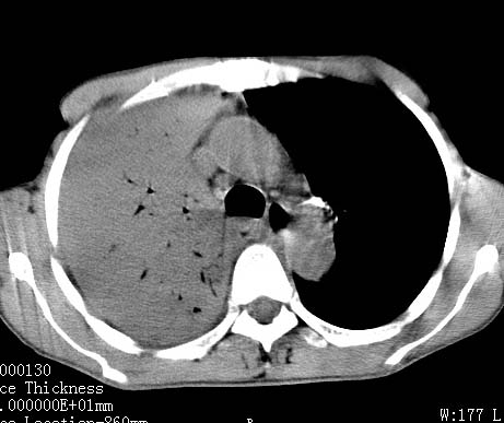 以下是引用zyyzzy在2009-1-5 17:39:00的发言:[br]右肺上下叶均见 大片状密度增高影,边界清晰,其内可见支气管充气征,气管支气管通畅。纵膈略向右移位,其内无肿大淋巴结影。首先考虑炎性病变。不排除一些特异性的炎症。不知道发烧吗??wbc高吗??建议治疗后复查!!