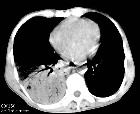 右肺感染性病变(大叶性肺炎可能);建议抗炎治疗后复查。