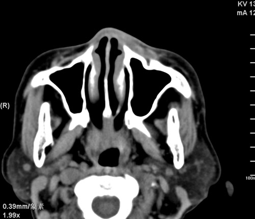 左侧鼻前庭囊肿并感染。双侧上颌窦炎。支持