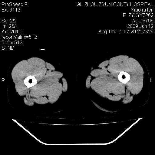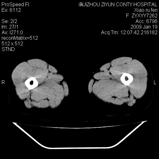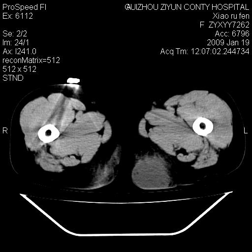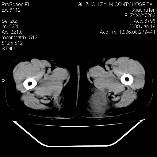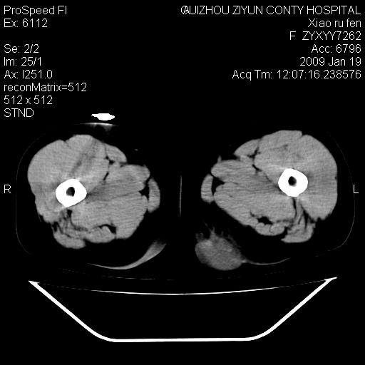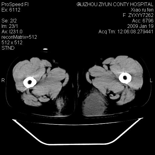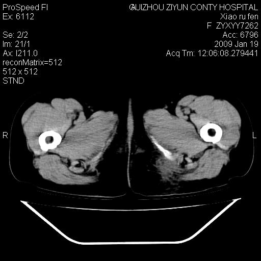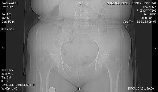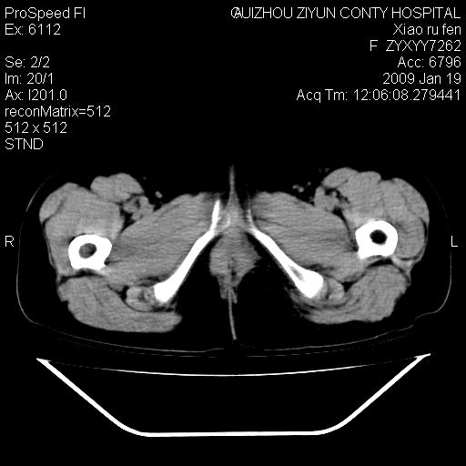 以下是引用随光逐影在2009-1-19 16:15:00的发言:[br]左侧臀部类似软组织密度肿块,性质待定(不排除肿瘤可能);建议行进一步检查。