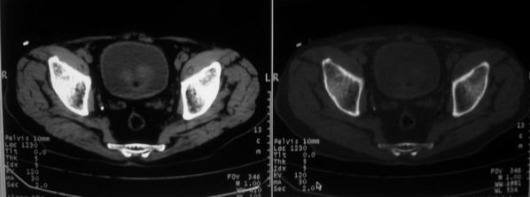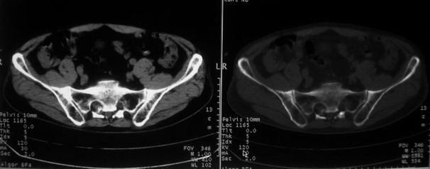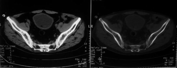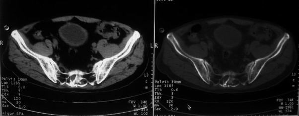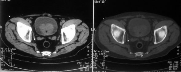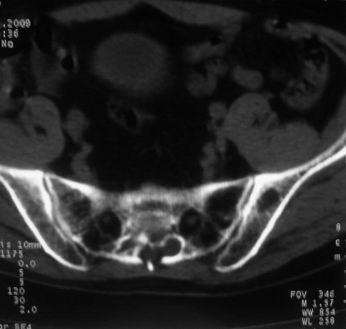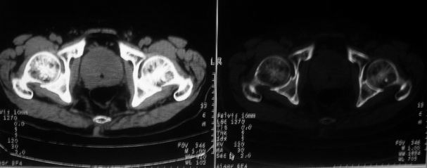 以下是引用xiaoniu在2009-1-19 13:19:00的发言:[br]前列腺明显增大,突入膀胱,各叶比例协调,密度均匀,精囊腺及精囊角正常;考虑良性增大。[br]骶骨没有看到明显异常。