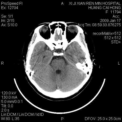 以下是引用xiaoniu在2009-1-19 13:29:00的发言:[br]左侧颞叶三角形低密度影,占位效应不明显,其内点片样高密都影,青少年患者,首先考虑:少突胶质瘤。因为有感冒病史,不能除外感染的可能。