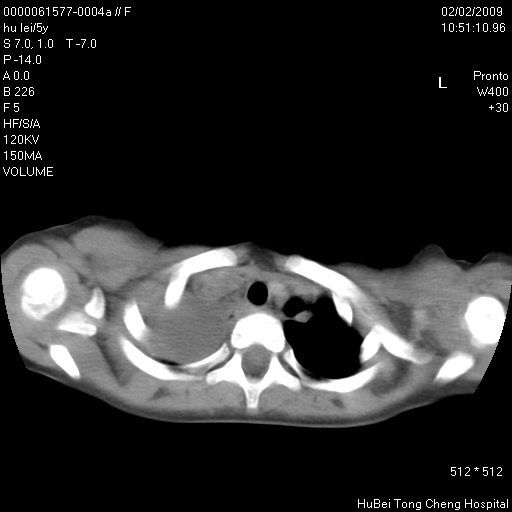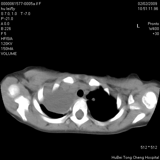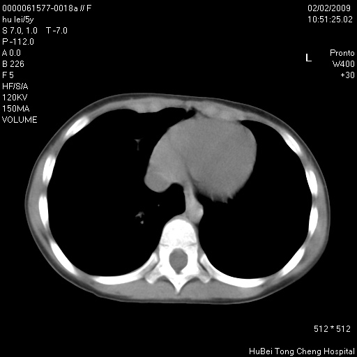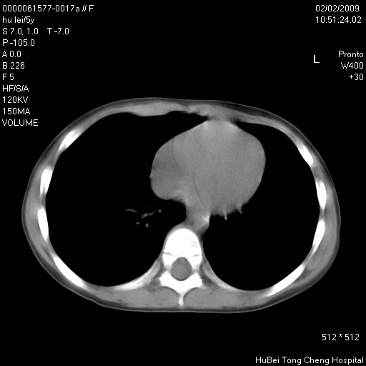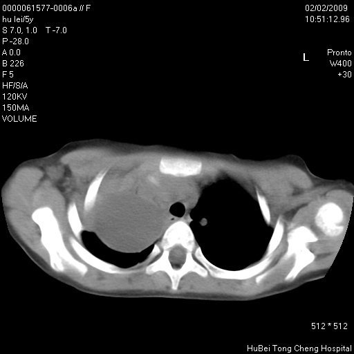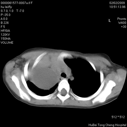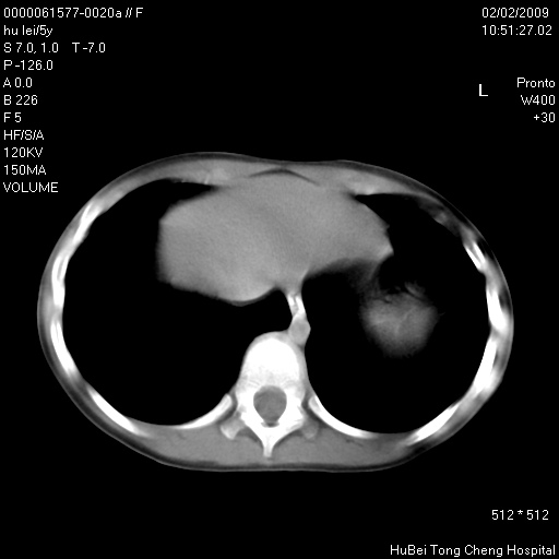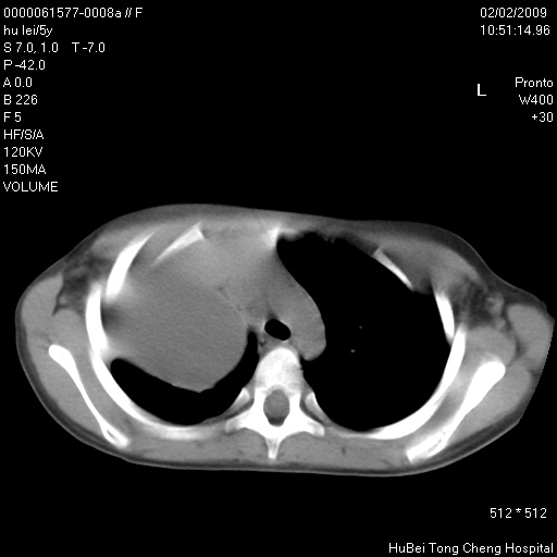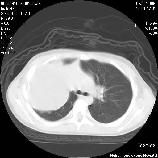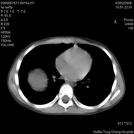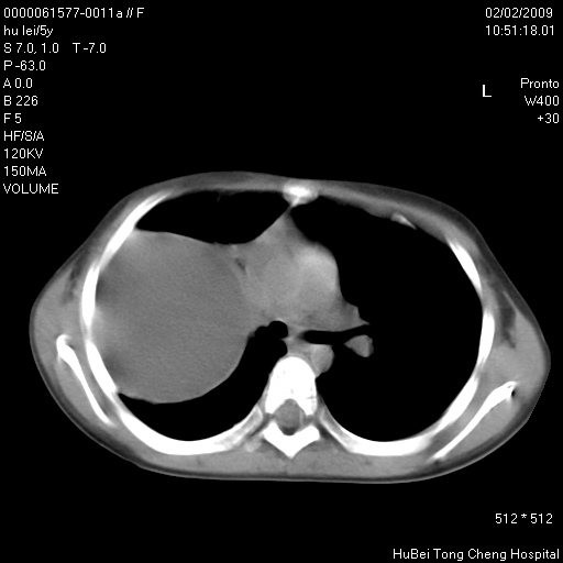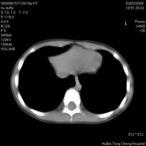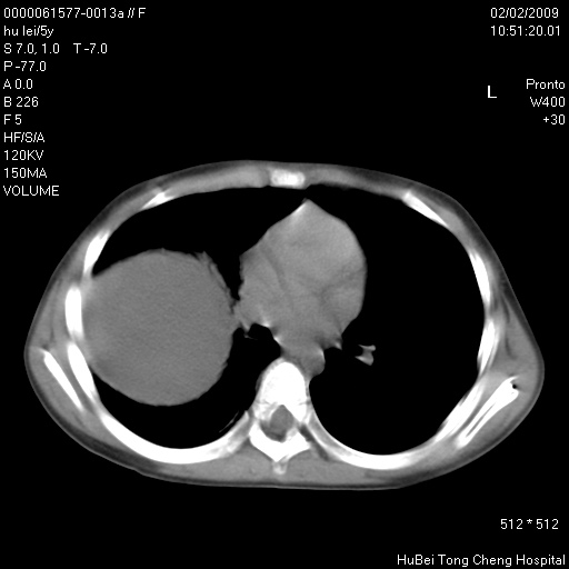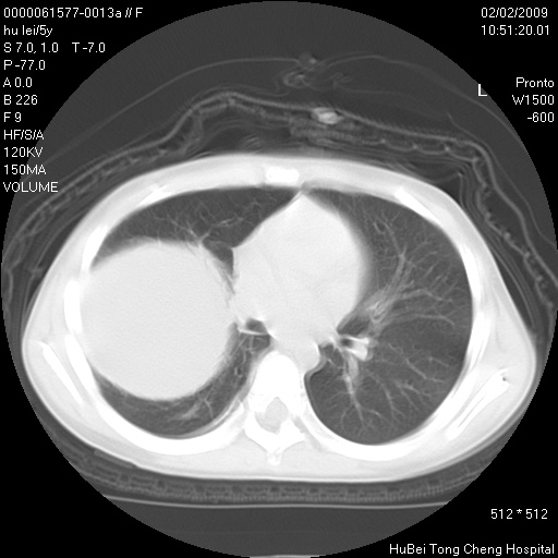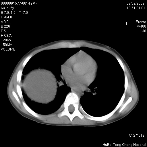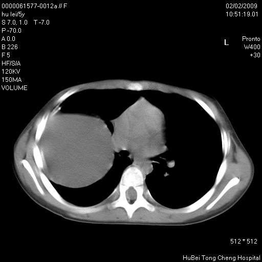 患者:男,5。无明显不适,拍胸片考虑右肺囊肿。