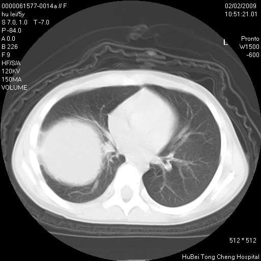 右肺巨大囊肿或包虫