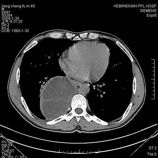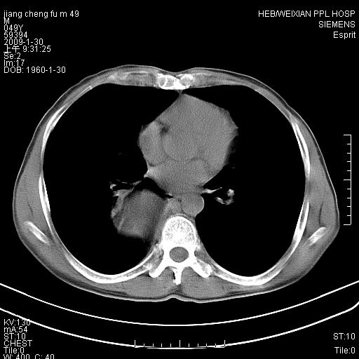 标题: CT17895:男性,49岁,主因胸痛,右肺呼吸音低 [打印本页]