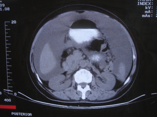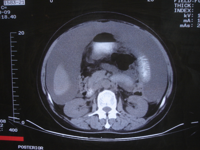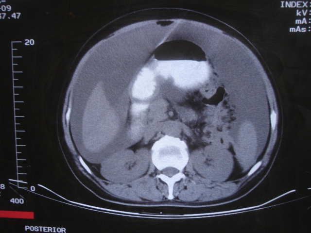 以下是引用随光逐影在2009-2-4 16:00:00的发言:[br]1)不排除胃癌可能;建议行胃镜检查。2)大量腹水。