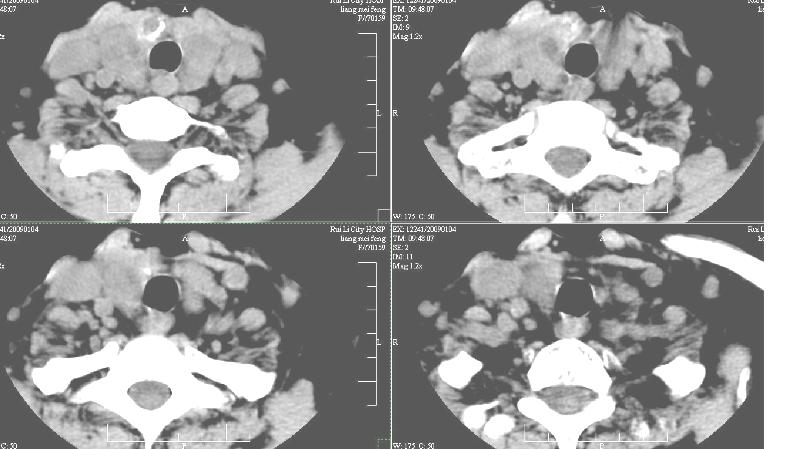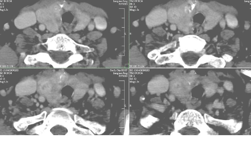 标题: 回复:ct17960:f,68岁,颈部肿大4年,加重1年疼痛,