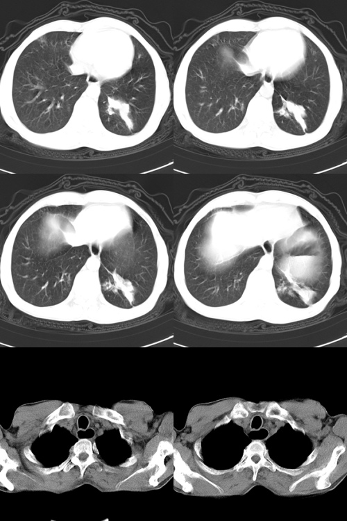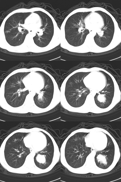 以下是引用余辉在2009-2-7 8:29:00的发言:[br]考虑左下肺周围型肺癌伴肺门、纵隔淋巴转移及右肺转移