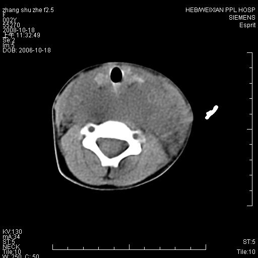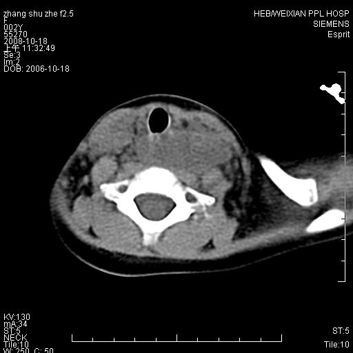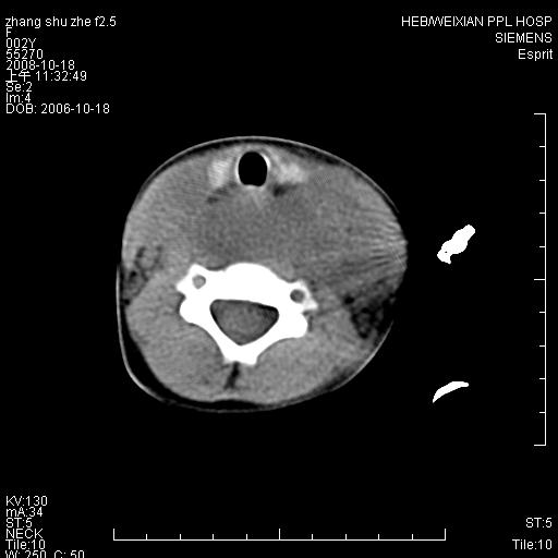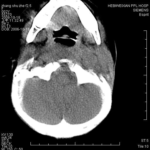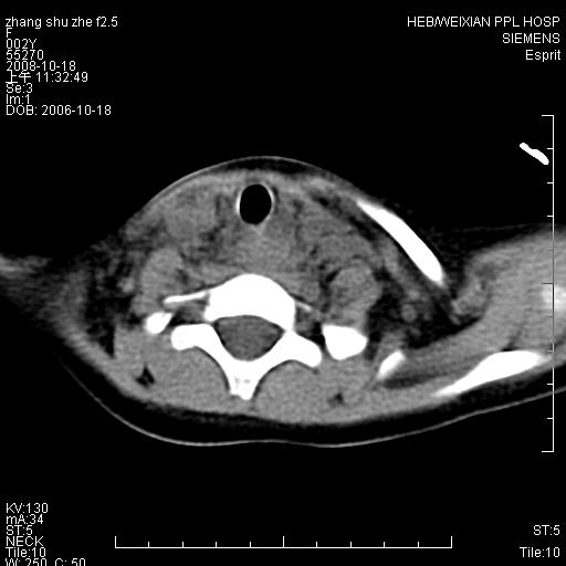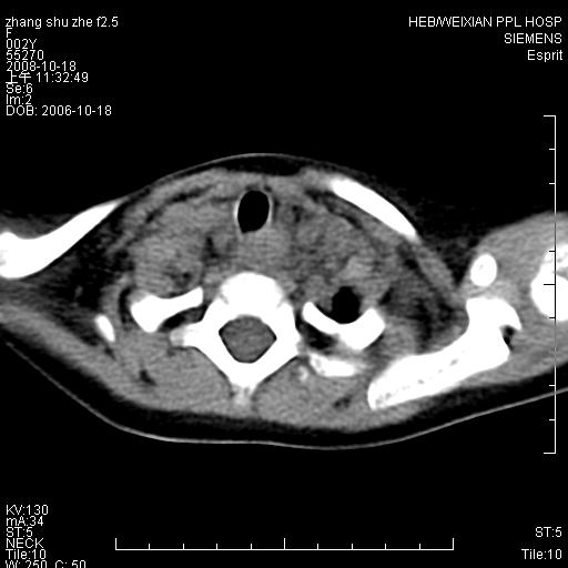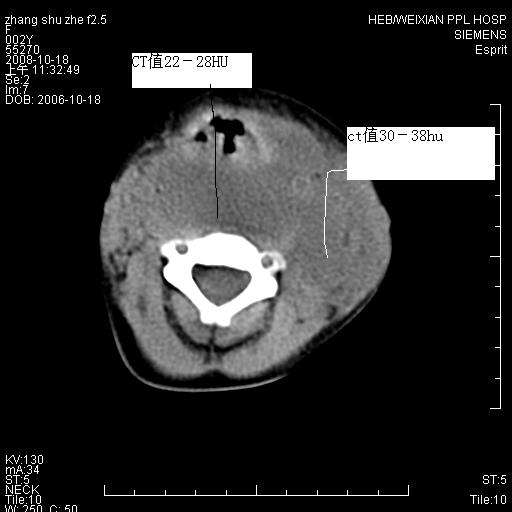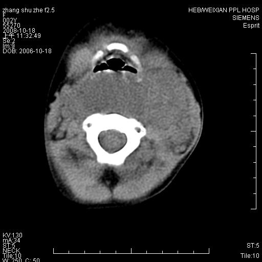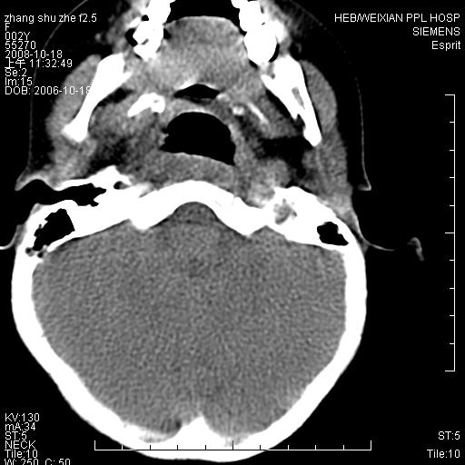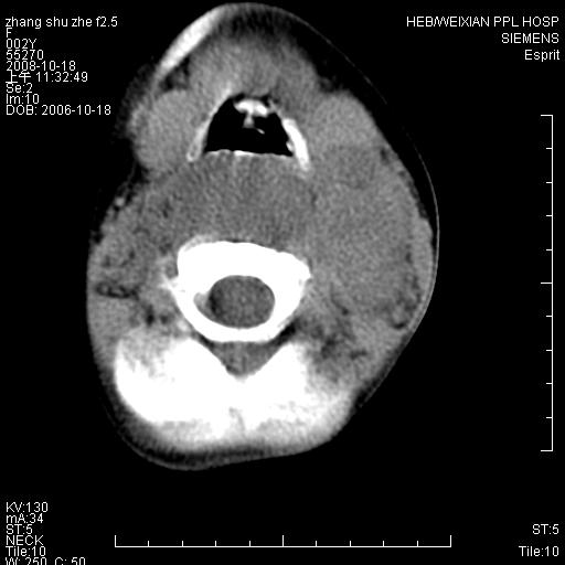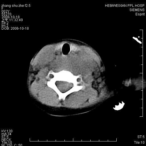 以下是引用dyqct在2009-2-10 21:04:00的发言:[br]年龄?性别?有发烧吗?[br]鼻咽部、口咽部、喉咽部及颈椎前间隙广泛肿厚,明显占位效应并致相应组织变形。ct值22-28hu。[br]考虑:1、颈前脓肿可能性大;[br] 2、建议增强或治疗后复查。