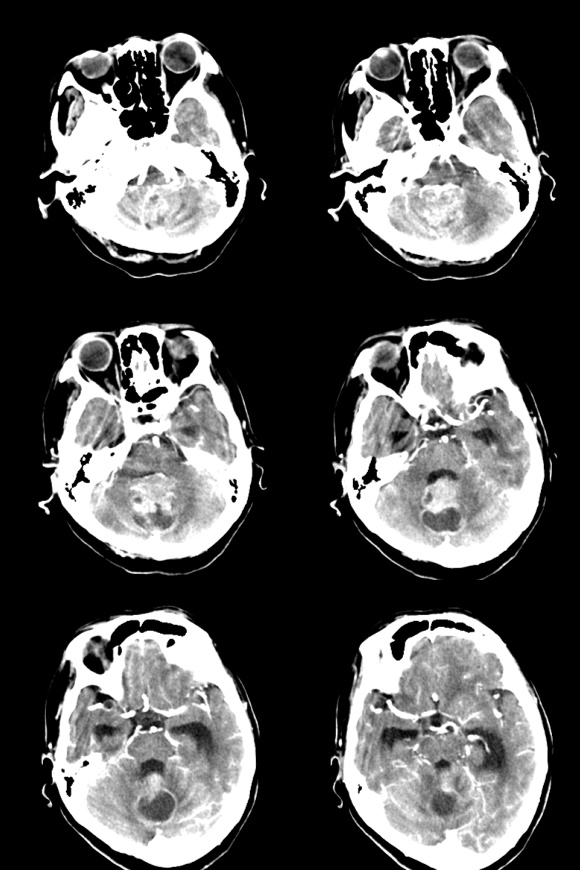 [br]小脑蚓部血管母细胞瘤伴脑室扩张积水。
