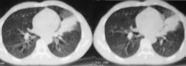 左侧舌叶炎症改变,考虑肺不张和炎性假瘤可能,