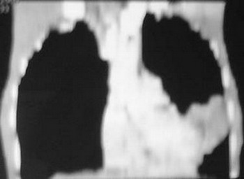 2.)纵膈窗片见:垂直胸膜边缘平直甚至微凹;
