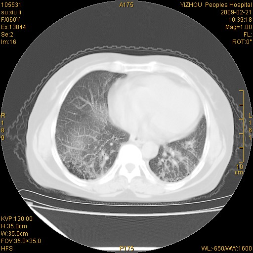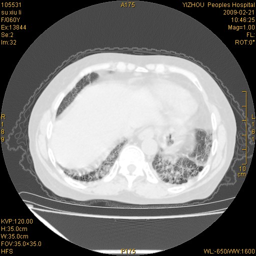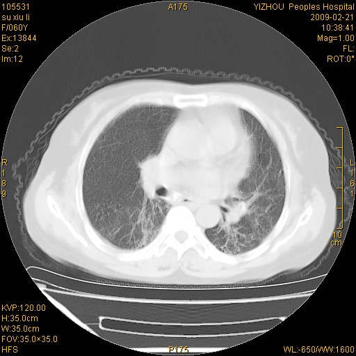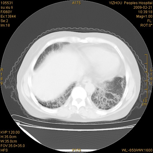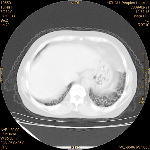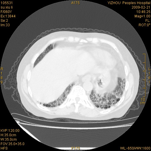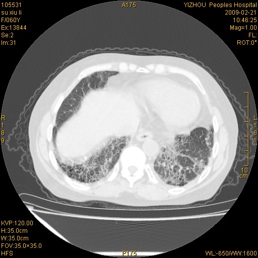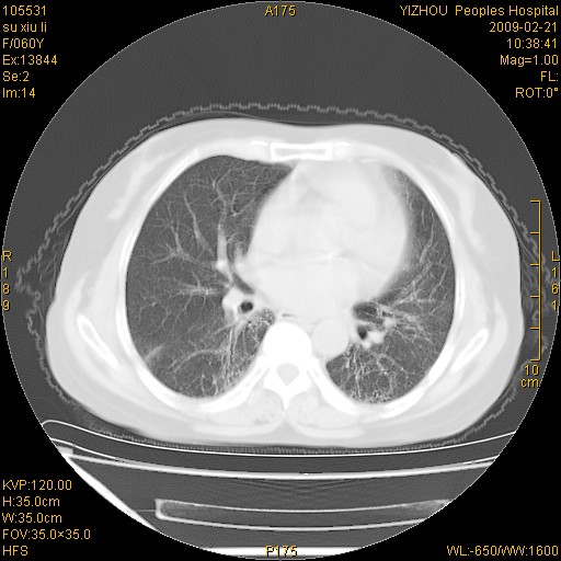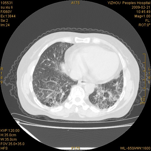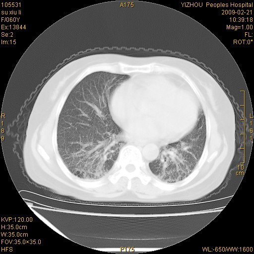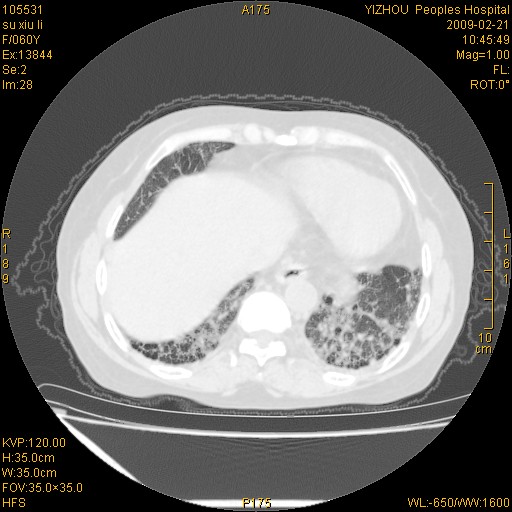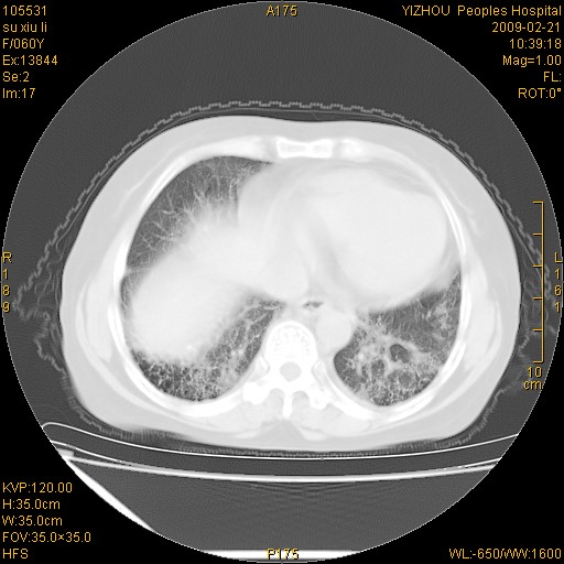 两肺支扩,以肺为著合并双肺较广范纤维化病变。建议除外结核等病变。