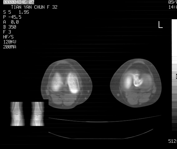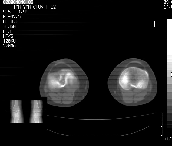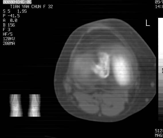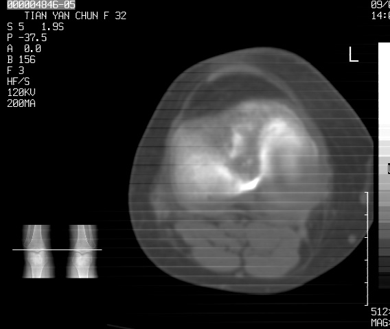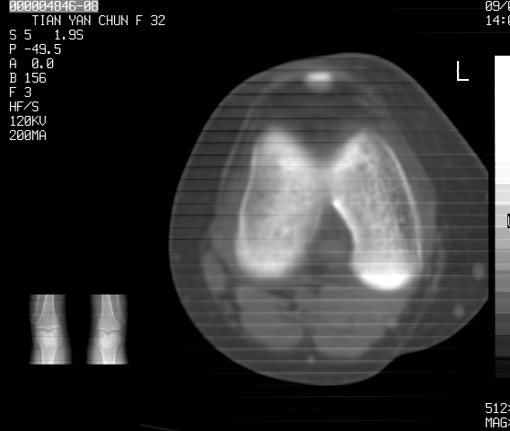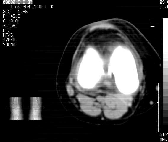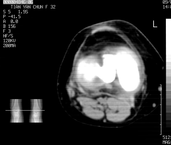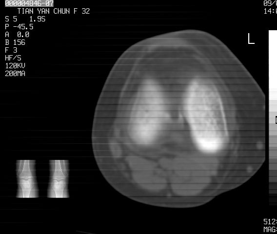 回复:ct18487:请会诊,女32岁,左膝疼痛数日