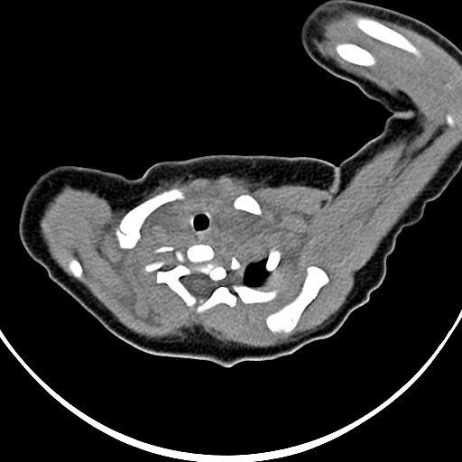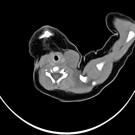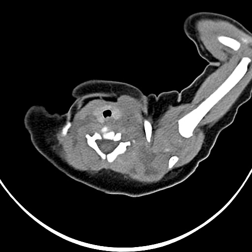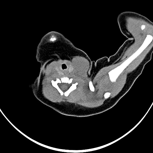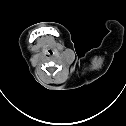 患者,男,1月,出生后一月,无明显诱因出现颈部左前方肿块。体检:左侧颈部轻度凸起包块,触之较硬。