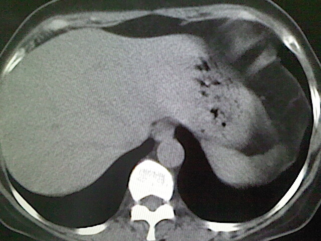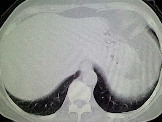 左肺舌段炎性反应。片子的质量太不好了。