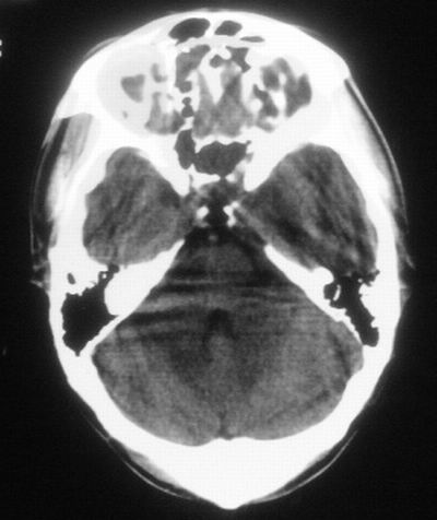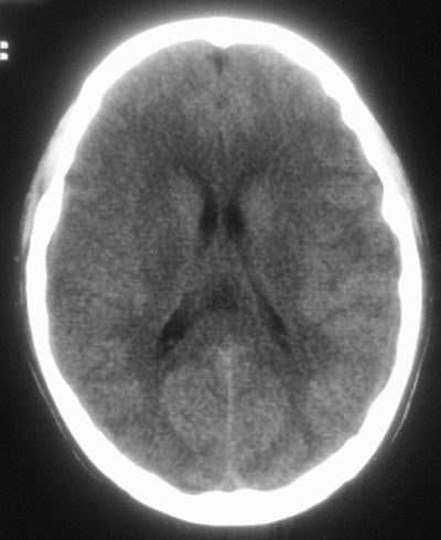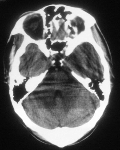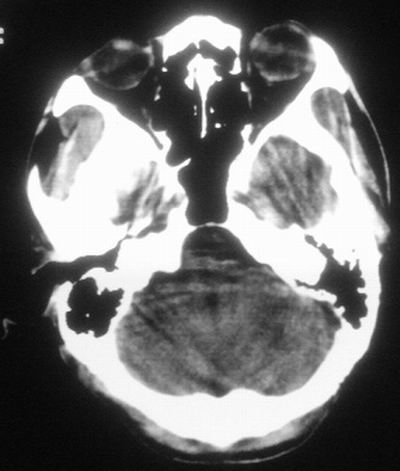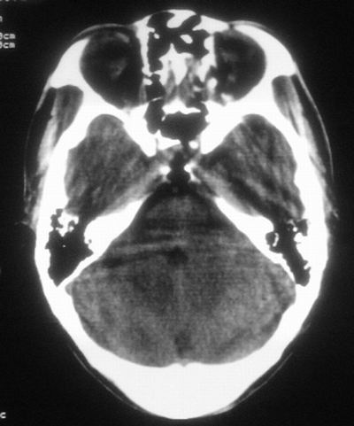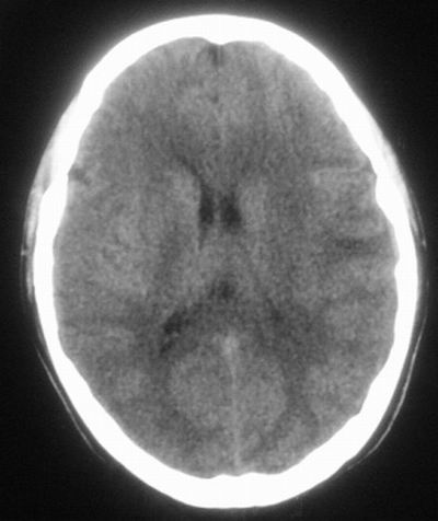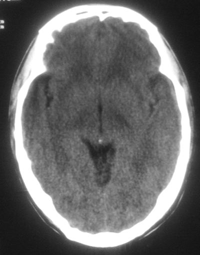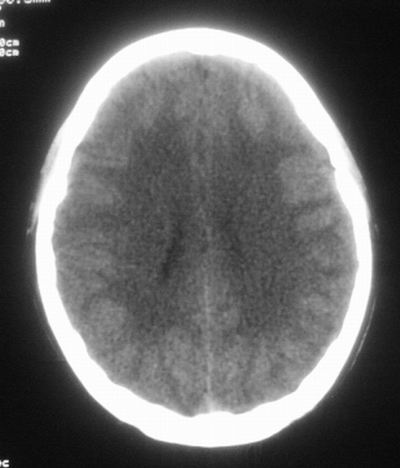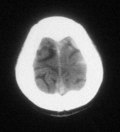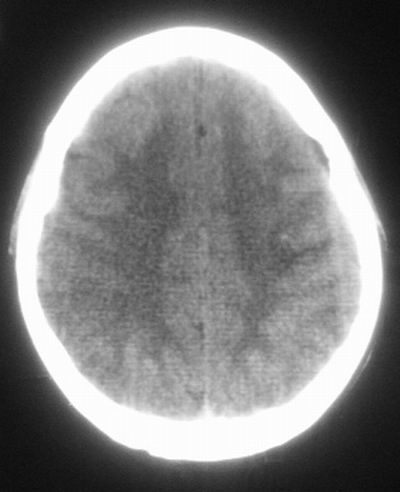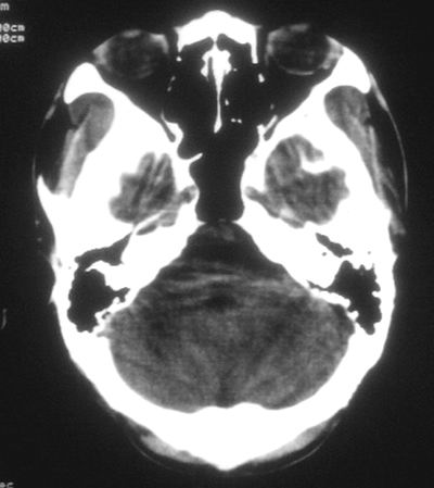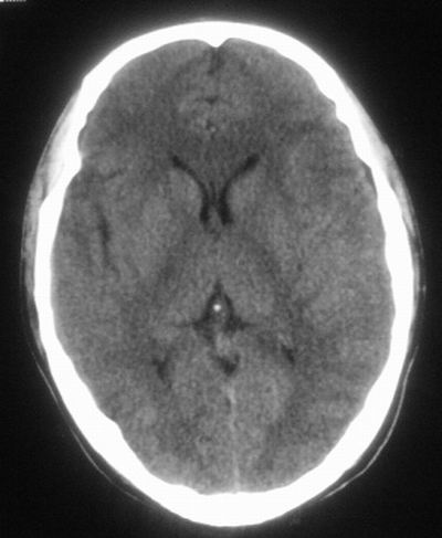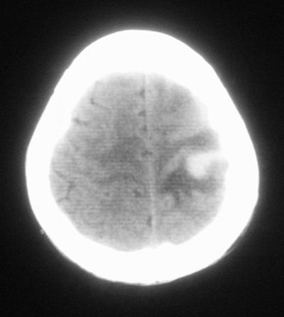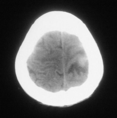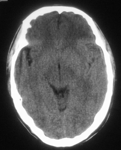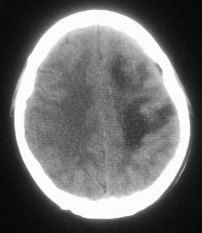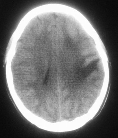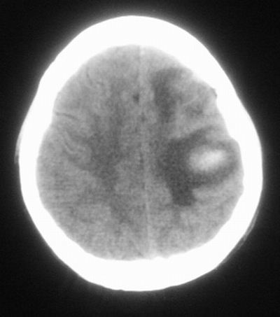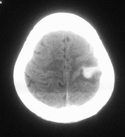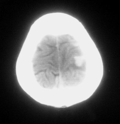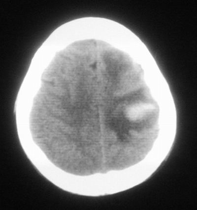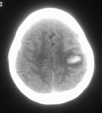 第一次颅脑ct扫描:左侧额顶叶血肿。