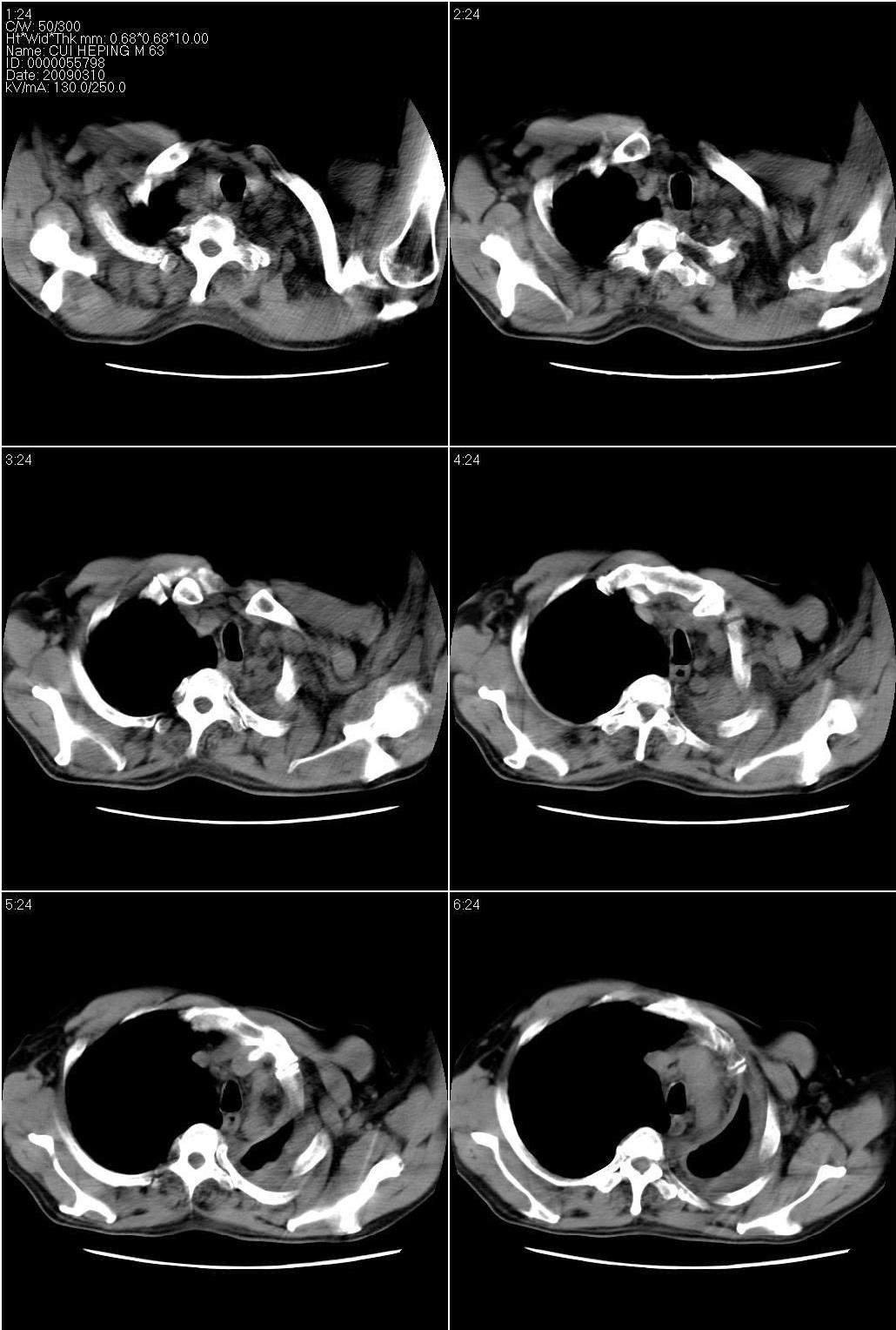 以下是引用随光逐影在2009-3-10 20:54:00的发言:[br]1)左肺结核,左肺膨胀不全。2)左侧液气胸,左侧胸膜肥厚。