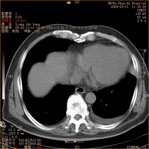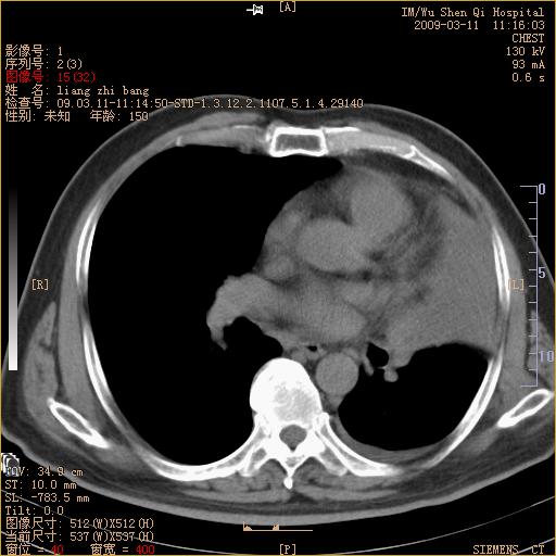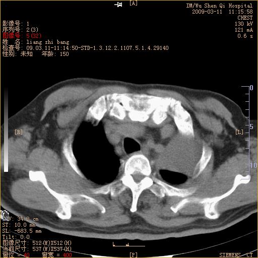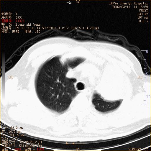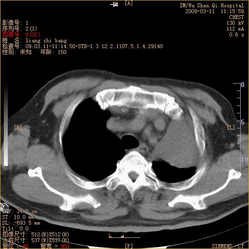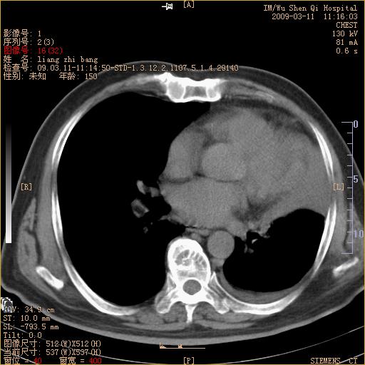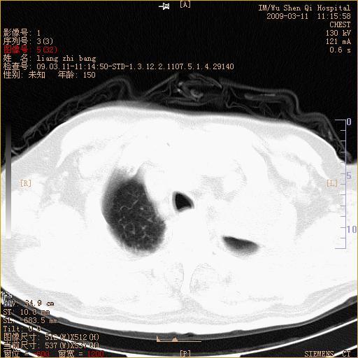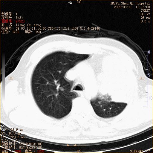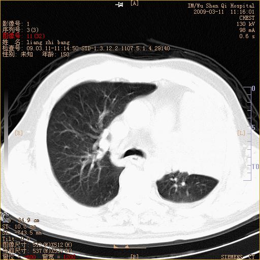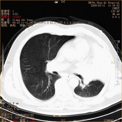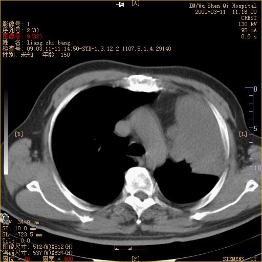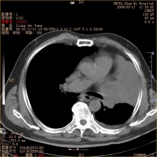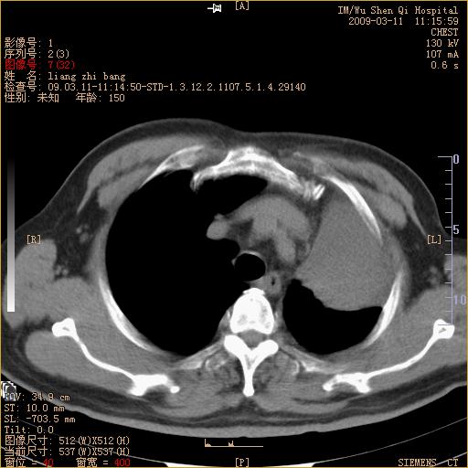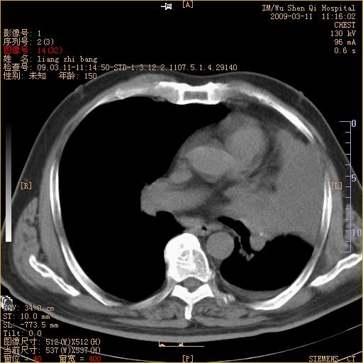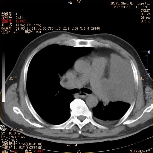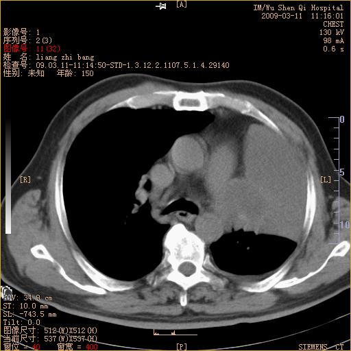 1、左肺上叶中央型肺癌并上叶阻塞性肺不张。