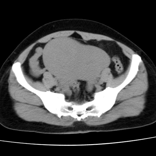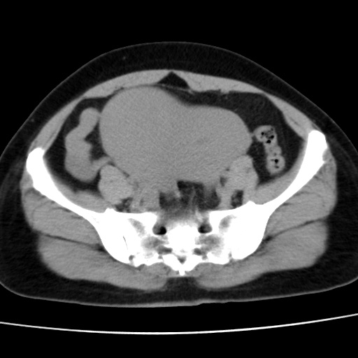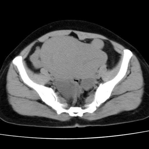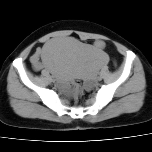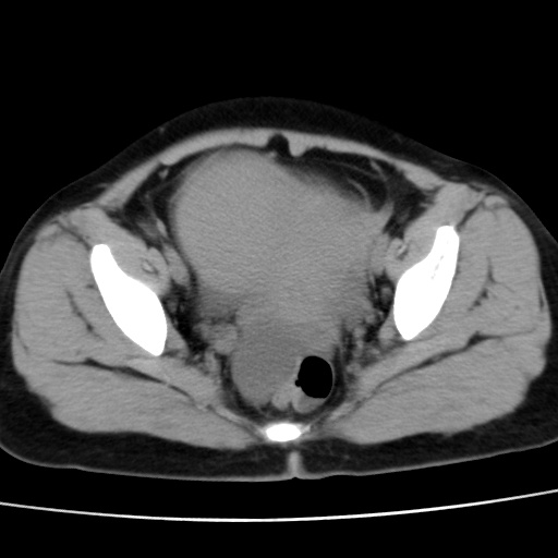 子宫肌瘤,宫体部后方见液性密度影,是肠道还是子宫与直肠陷窝积液不好说,我觉得它的位置有点高
