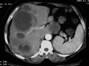 以下是引用余辉在2009-3-12 8:36:00的发言:[br]肝内多发囊性病变,部分囊内有单发或多发\"子囊\"表现,囊壁均较光整,多考虑多发包虫感染.[br]但本例做了增强,原平扫病灶高密度区有延迟强化(不知是不是对比错觉,建议提供具本对比ct值),如果真有强化的话应该是转移瘤了