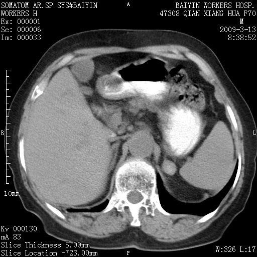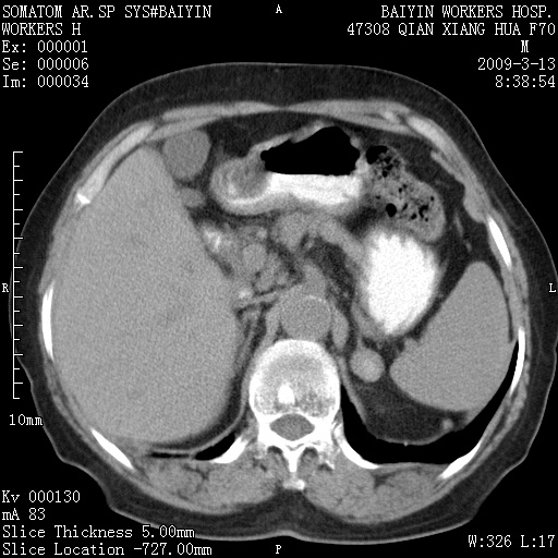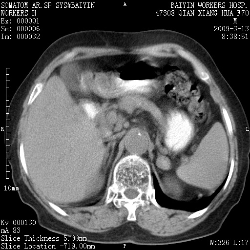 以下是引用随光逐影在2009-3-13 14:58:00的发言:[br]左侧肾上腺结节状软组织密度影;考虑肿瘤(肾上腺腺瘤?转移瘤?)。
