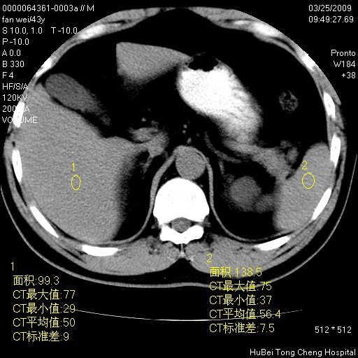 双肾ct轴位平扫+增强扫描(层厚10mm,螺距1.0,重建间隔10mm),图像如下: