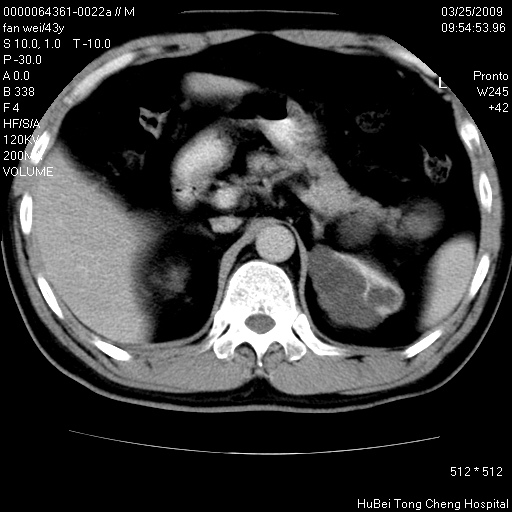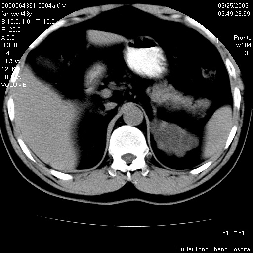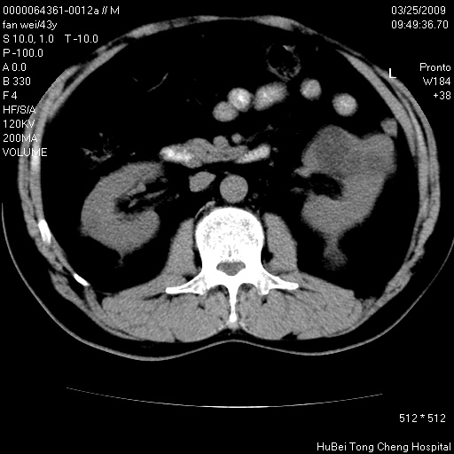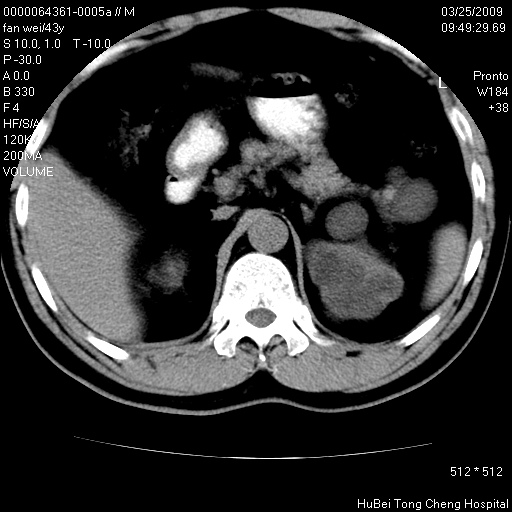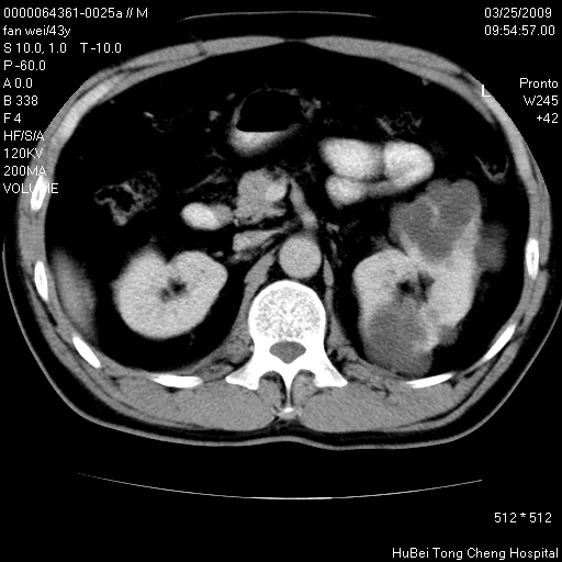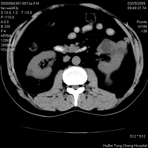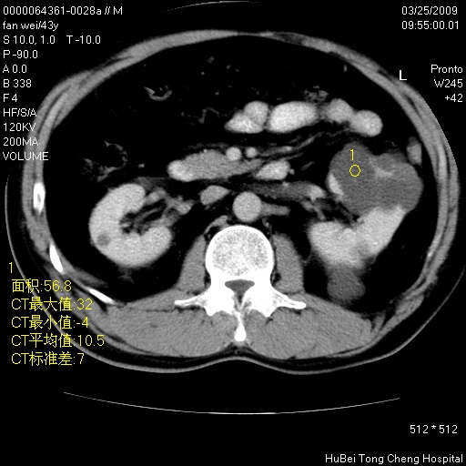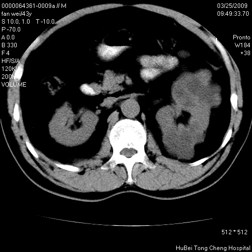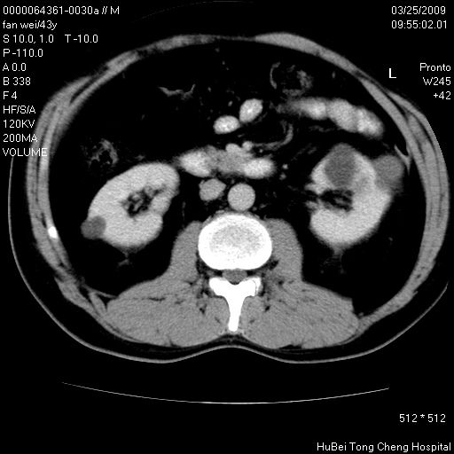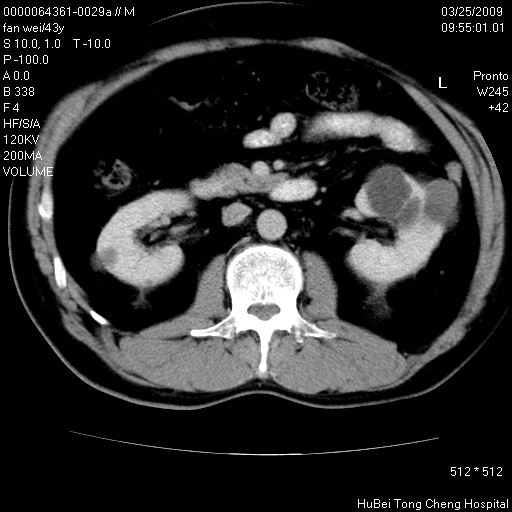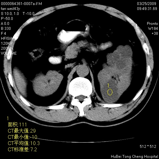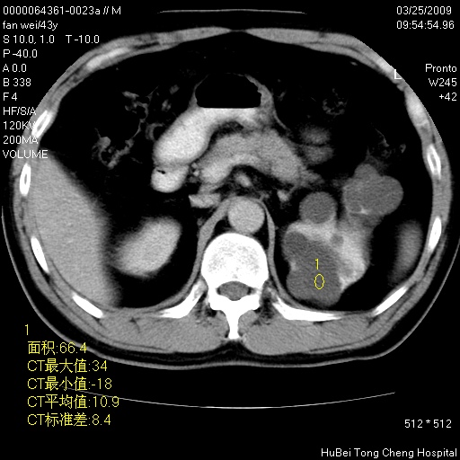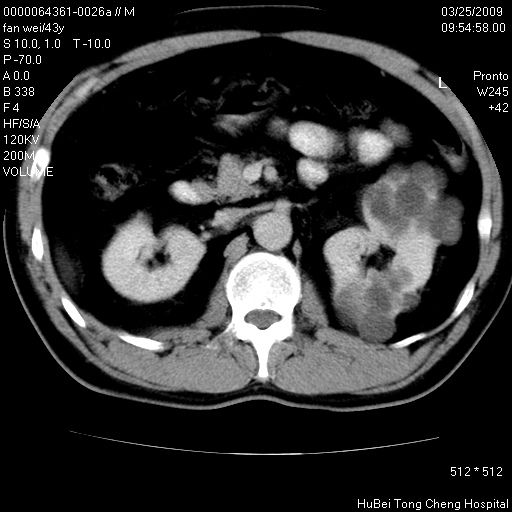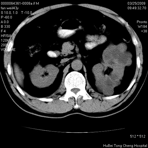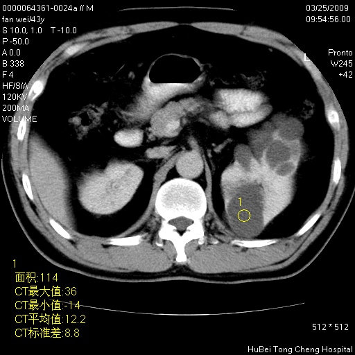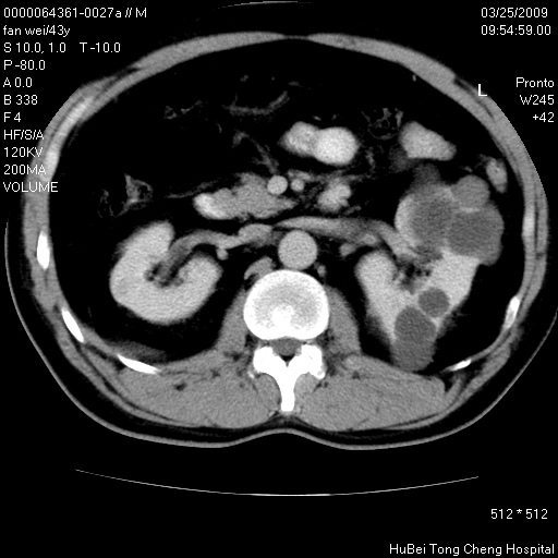 CT19015:M,43Y。左侧多囊肾?左侧多发性肾囊肿?