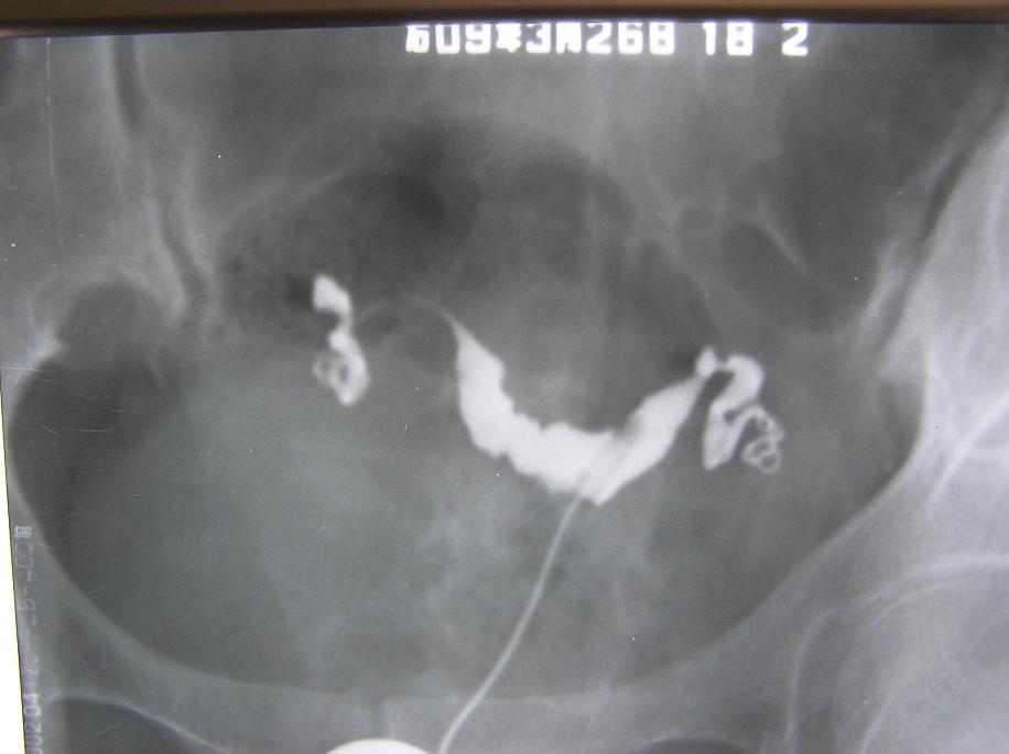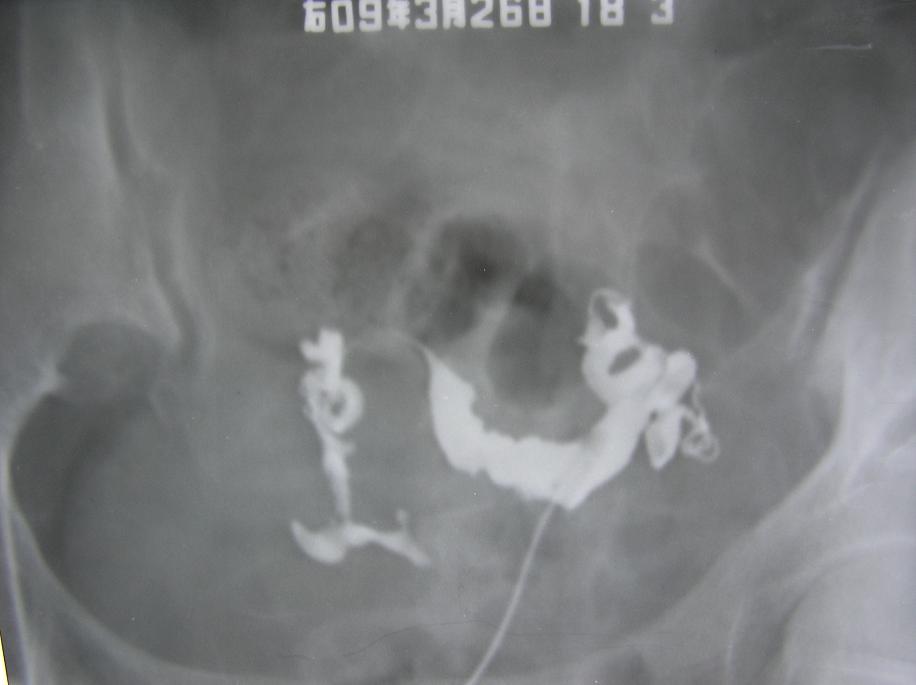 以下是引用杀毒软件在2009-3-27 18:22:00的发言:[br]比较严重的---宫腔粘连,整个宫腔看起来似---双角子宫,弥散像造影剂多在宫旁及输卵管旁,右侧输卵管僵直,壁上有小突起。[br][br]首选考虑----双侧慢性输卵管炎----〔宫腔粘连,输卵管周围粘连〕。 病人应该有很重盆腔炎。[br][br]因为单纯宫腔粘连,输卵管表现可保持正常,但此例子宫及输卵管都有明显改变的表现----不能排除---结核,建议---ppd。[br]