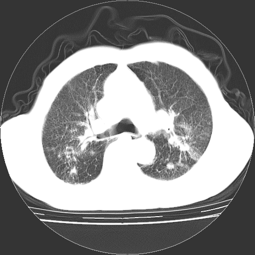 男,72岁,反复咳嗽、憋气一年余,有15年的煤矿井下工作史。