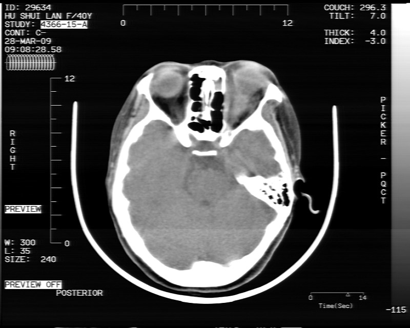 以下是引用随光逐影在2009-3-28 11:55:00的发言:[br]1)左眼眶内占位性病变,性质待定(不排除炎性假瘤);建议行进一步检查。2)左侧额窦炎。