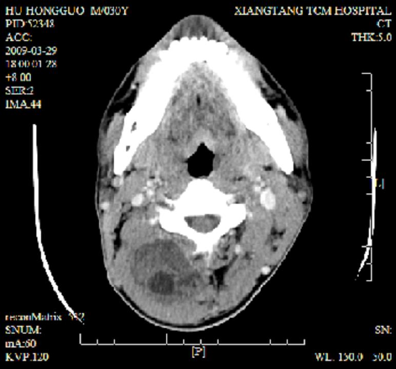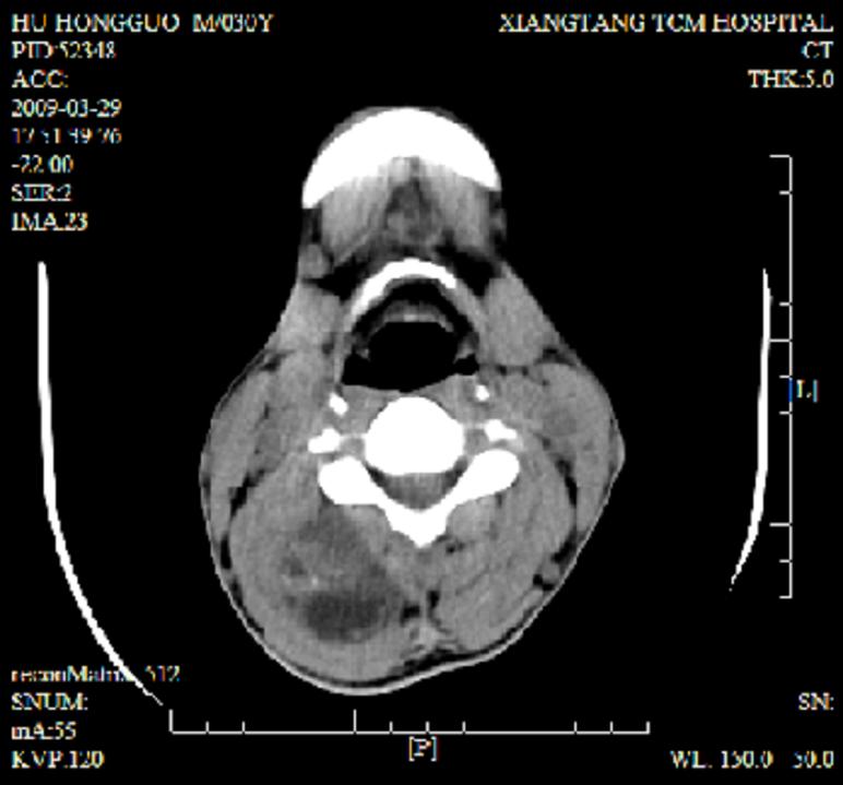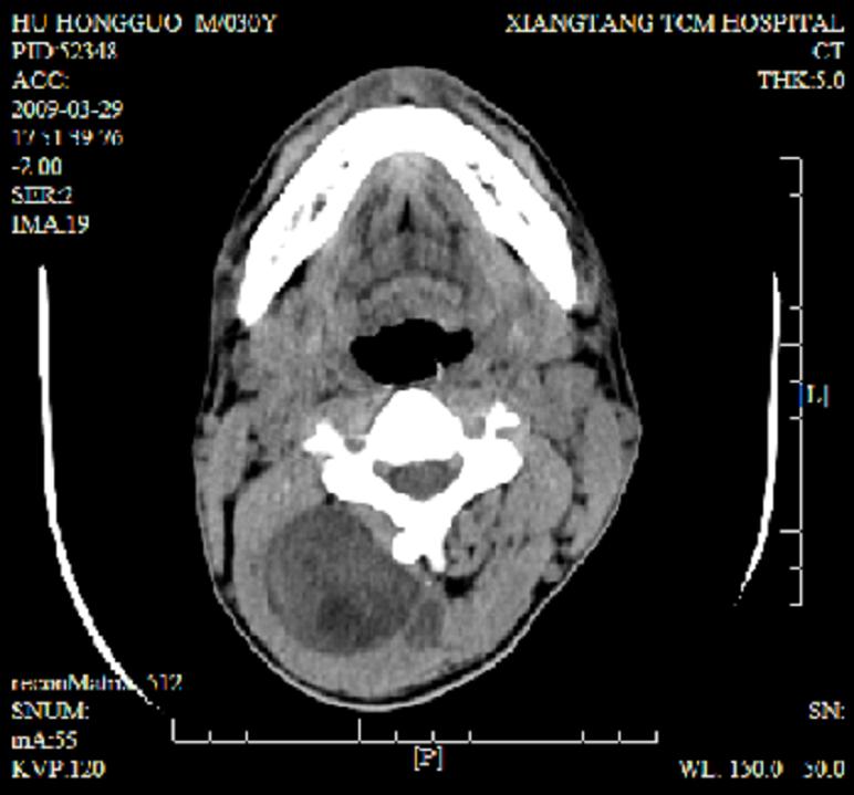 考虑神经纤维瘤可能,不除外淋巴管瘤。