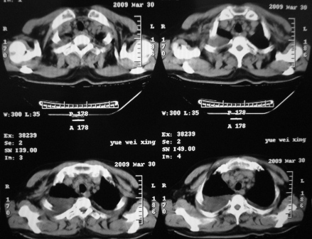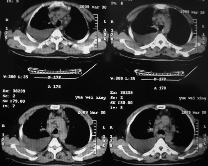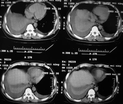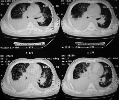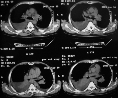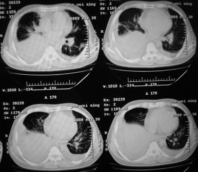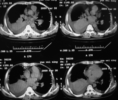 以下是引用zjb在2009-3-31 20:14:00的发言:[br]先考虑----右中央型肺癌继发下叶不张,双肺及纵隔淋巴转移,双侧胸腔积液,心包积液。[br]