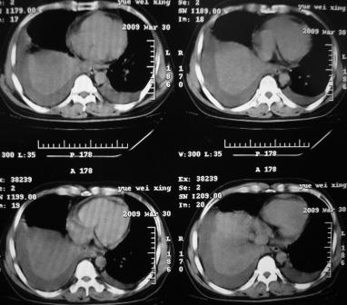 以下是引用杀毒软件在2009-3-31 17:48:00的发言:[br]病史呢?先考虑----右中央型肺癌继发下叶不张,双肺及纵隔淋巴转移,双侧胸腔积液,心包积液。[br][br][br]不排除---心脏病变所致