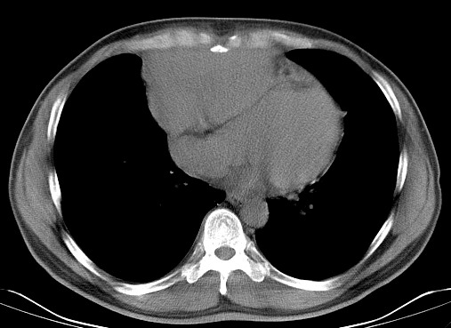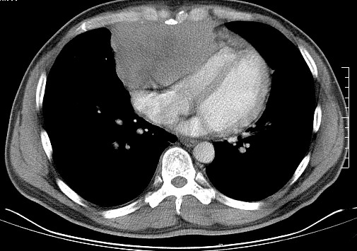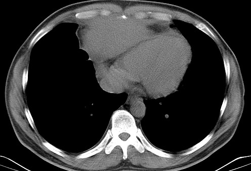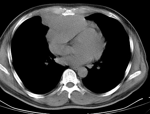 CT19181:反复腹痛入院行彩超检查示胸骨右缘4、5肋间不均质