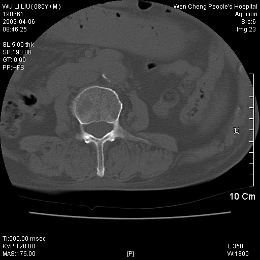 以下是引用zjzjr在2009-4-7 12:13:00的发言:[br]支持多发性转移瘤,右股骨颈骨折,腰椎亦有压缩性骨折.肝内胆管结石伴胆内外胆管扩张,左肾结石.
