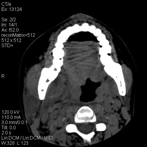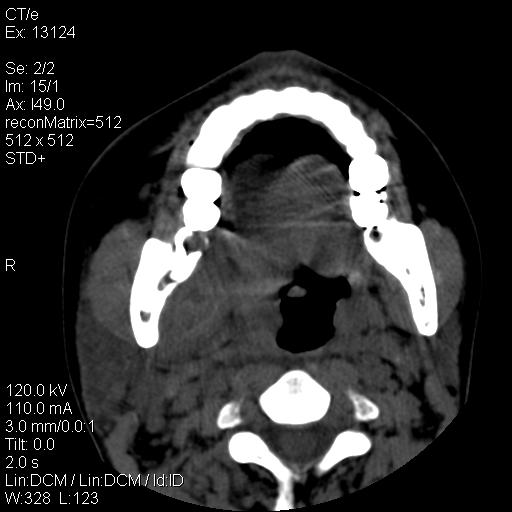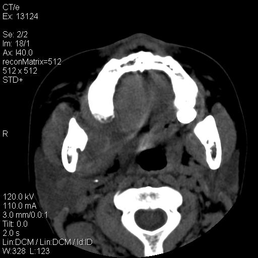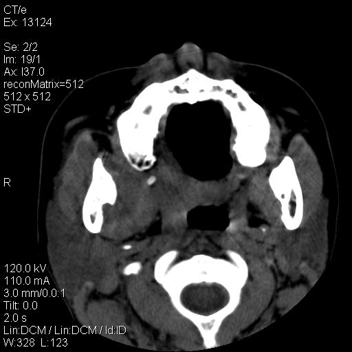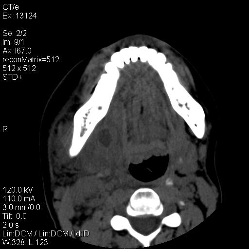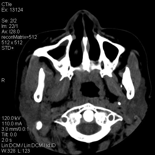 zhichi 考虑 右侧颌下脓肿伴口咽鼻咽感染,淋巴结肿大。肿瘤待排