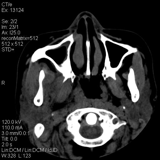 考虑右侧下颌区脓肿(牙源性)!支持!