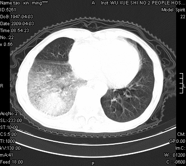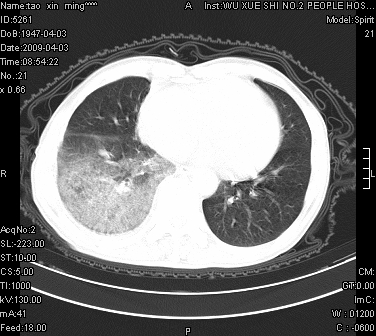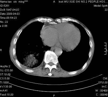 1)考虑右肺下叶周围型肺癌,并右肺下叶肺出血。2)右侧少量胸腔积液。