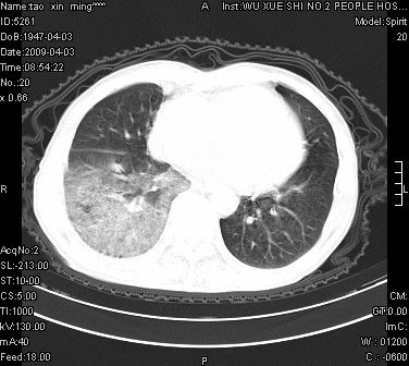 右下周围型肺癌,右下肺出血,右侧胸腔积。
