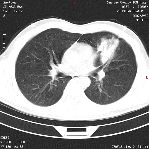 [br]考虑左肺上叶舌段及前段感染性病变;建议正规抗炎治疗后复查。