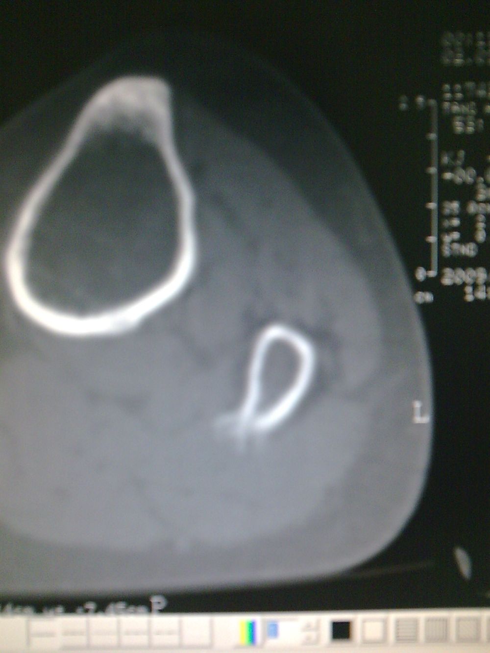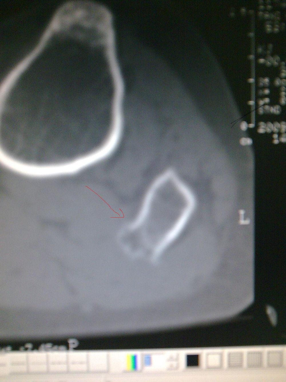 CT19437:男性,四十岁,因外伤入院,X光平片发现腓骨近端