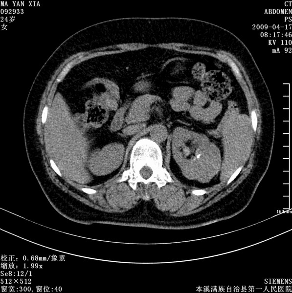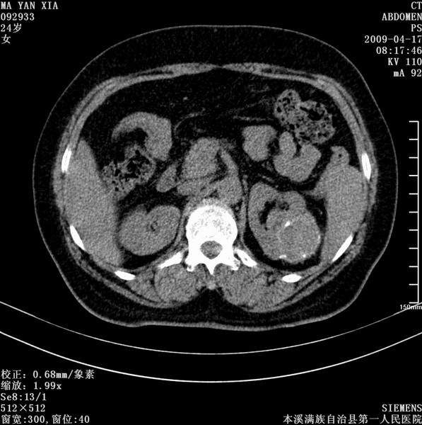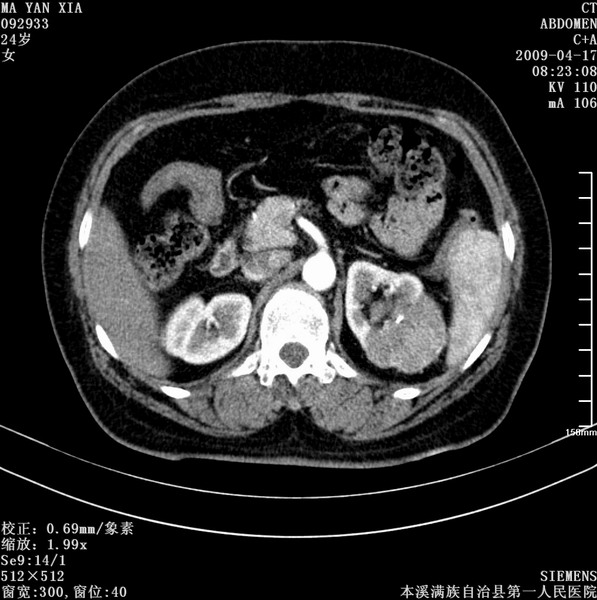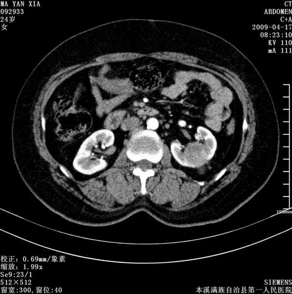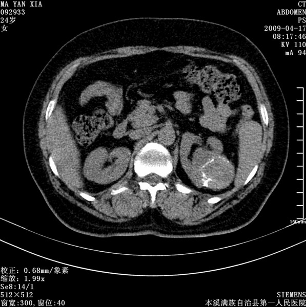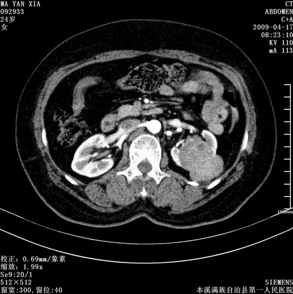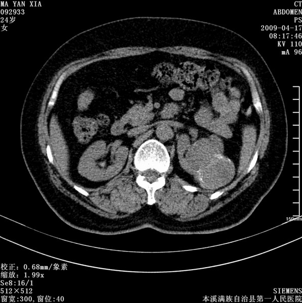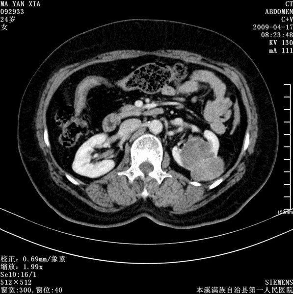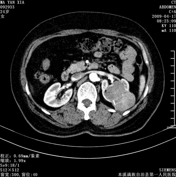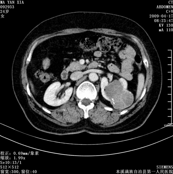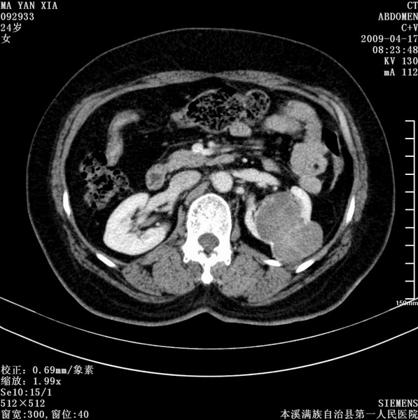 女,51岁,体检时发现肾脏占位,建议ct增强。无任何自觉症状。
