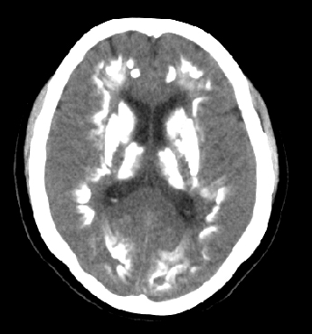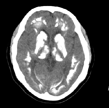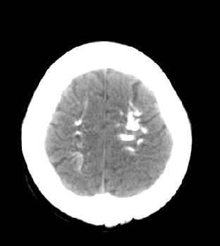 鉴别诊断:fahr 病,又称特发性家族性脑血管亚铁钙沉着症,是一种少见病,男女发病无显著差异,多为散发。临床表现为阵发性意识不清,首发症状开始于14~51 岁不等,以后呈阵发性发作,表现为突然神志丧失、跌倒、四肢抽搐约,发作后常表现为意识淡漠,性格改变,血清钙在正常范围。ct表现尾状核头呈倒“八”字形或片状钙化,在大脑半卵圆中心皮、髓质交界处多为点、小片状钙化,丘脑多呈对称小点、小条状钙化,小脑齿状核呈括弧形或不对称性小片状钙化。