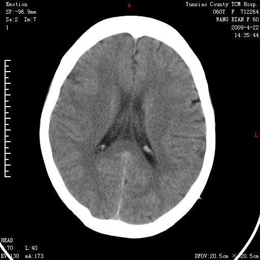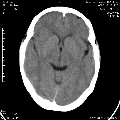 脑正常,肾有事,须强化,再定性.