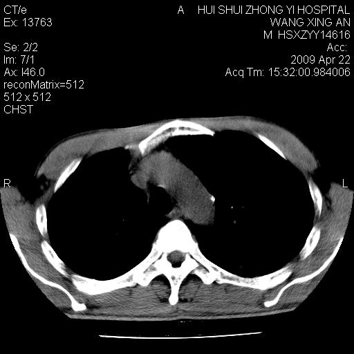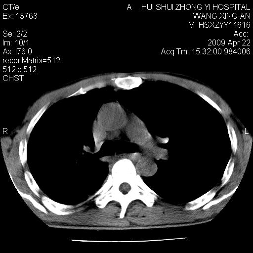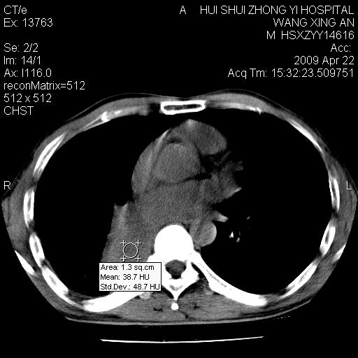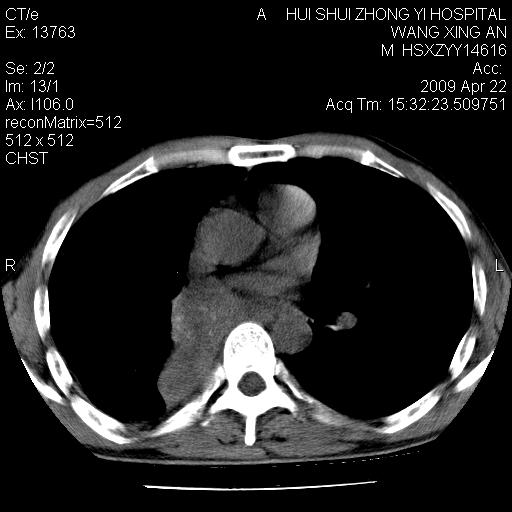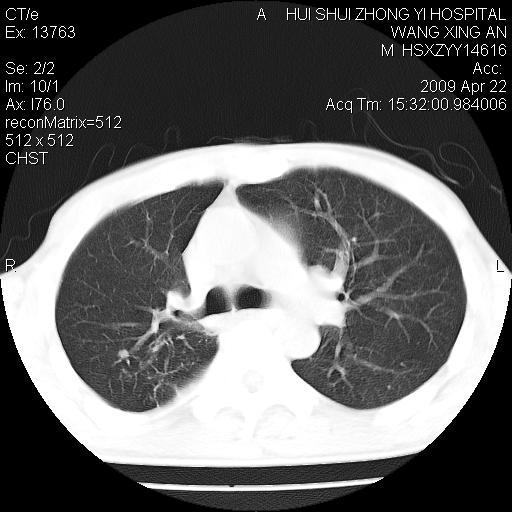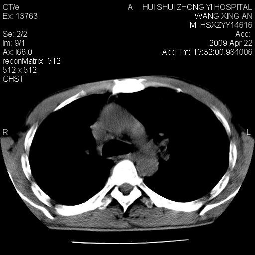 以下是引用judc在2009-4-22 19:45:00的发言:[br]考虑右侧中心性肺癌并下叶肺不张[br]右肺纤维灶[br]右侧少量胸腔积液