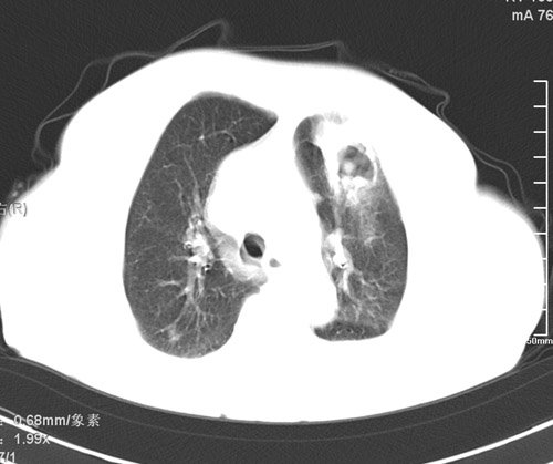 以下是引用杀毒软件在2009-4-22 18:45:00的发言:[br]考虑----左肺感染性病变〔真菌可能性大〕-----建议痰检。