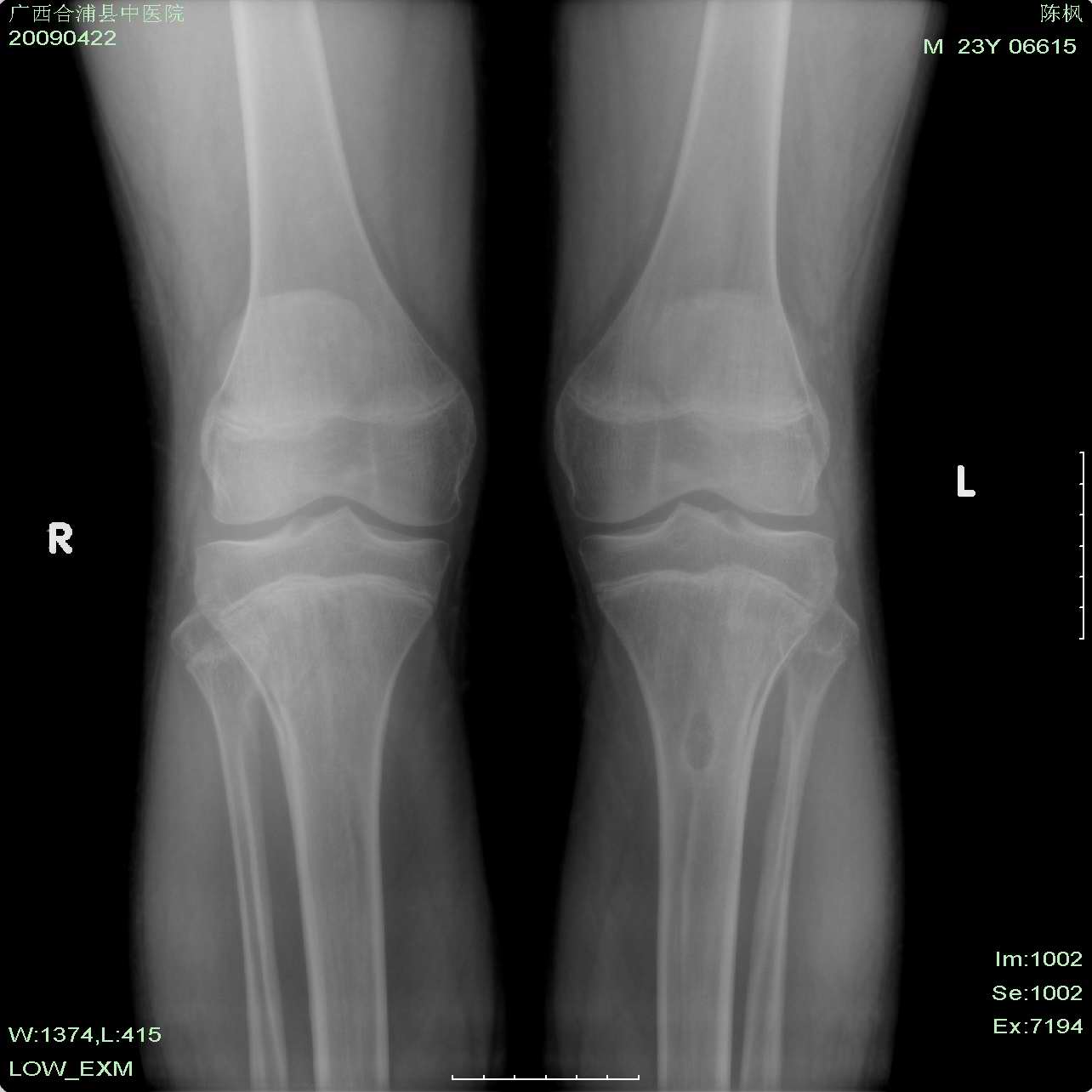 以下是引用杀毒软件在2009-4-22 19:28:00的发言:[br]长骨增粗见骨膜性成骨,多个骨骺线未闭,骨质疏松,左胫骨内卵圆形透亮区,边缘硬化。[br][br]结合临床符合----垂体内分沁骨病。可惜现有资料诊断并不具特征性。 [br][br]加照---蝶鞍和颅盖看看[br][br]胫骨内卵圆形透亮区---考虑---纤维性骨皮质缺损可能性大,不完全排除----低毒感染