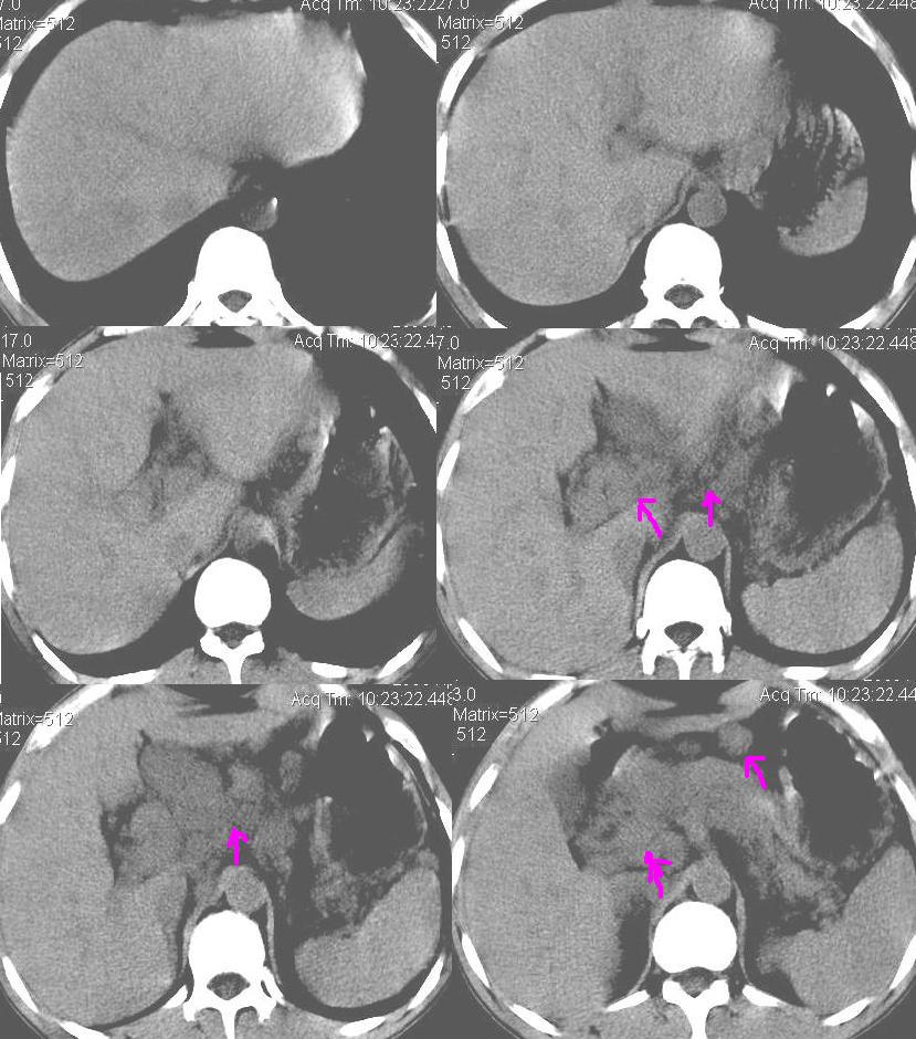 连最基本的ct值都没有测 腹部的窗宽窗位太大了 影响诊断