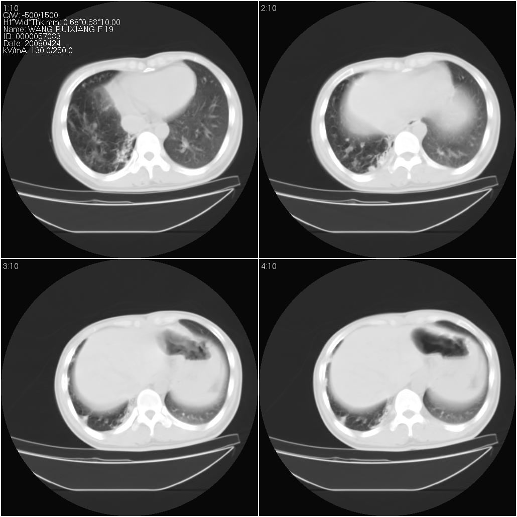 标题: 下边是一例不典型间质性肺炎的ct,大家看看和本例有什么